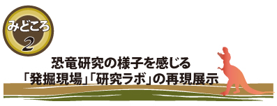 今回展示されるティラノサウルスの全身骨格は、近年の新発見や研究成果を細部まで反映させた最新・完全版全身骨格「パーフェクト・スタン」です。 会場の一角に、「発掘現場」「研究ラボ(化石クリーニング・標本レプリカ作成)」の研究工程を見せる再現ジオラマ・コーナーを設置します。